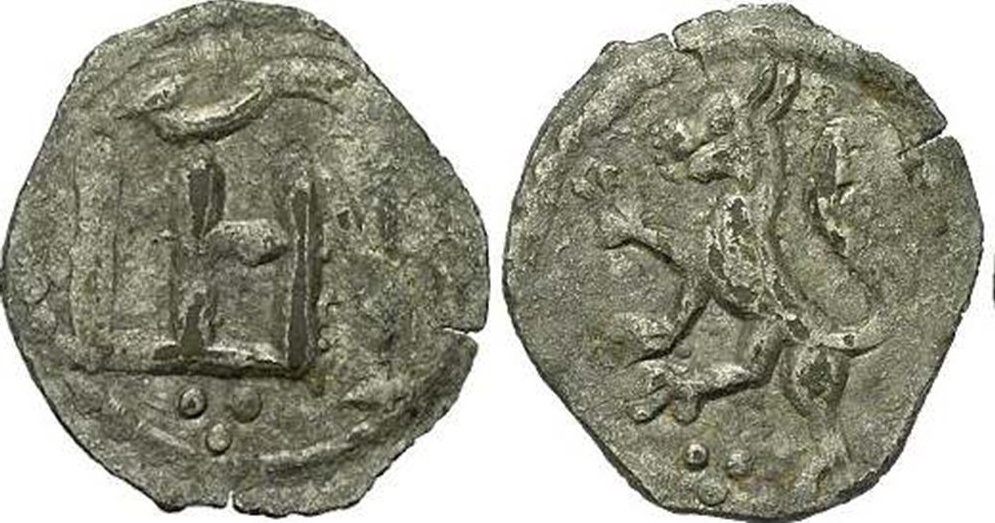 Сребърна монета на цар Иван Шишман с герба му – „разярен лъв“