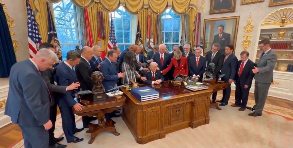 Тръмп по време на групова молитва в Овалния кабинет, Кадър: Екс/@erbmjha