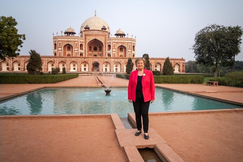 Управляващият директор на МВФ Кристалина Георгиева посети историческата гробница на Хумаюн в Делхи. Тя определи обекта като символ на индийската история.