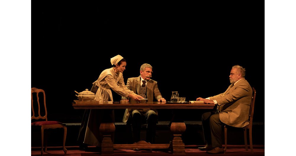 Юлиан Вергов, Владо Пенев и Албена Ставрева в “Народът на Вазов” СНИМКА: ГЕРГАНА ДАМЯНОВА Владо Пенев и Павлин Петрунов играят във “Великденско вино” СНИМКА: СТЕФАН Н. ЩЕРЕВ Христо Мутафчиев, който влиза в ролята на Стефан Стамболов, и Валентин Танев - в образа на Захарий Стоянов“, в "Духът на поета” от Стефан Цанев Снимка: Симон Варсано Актьорите на сцената по време на спектакъла “Бил Гейтс и Стив Джобс разговарят за бъдещето на информатиката” Снимка: Стефан Здравески