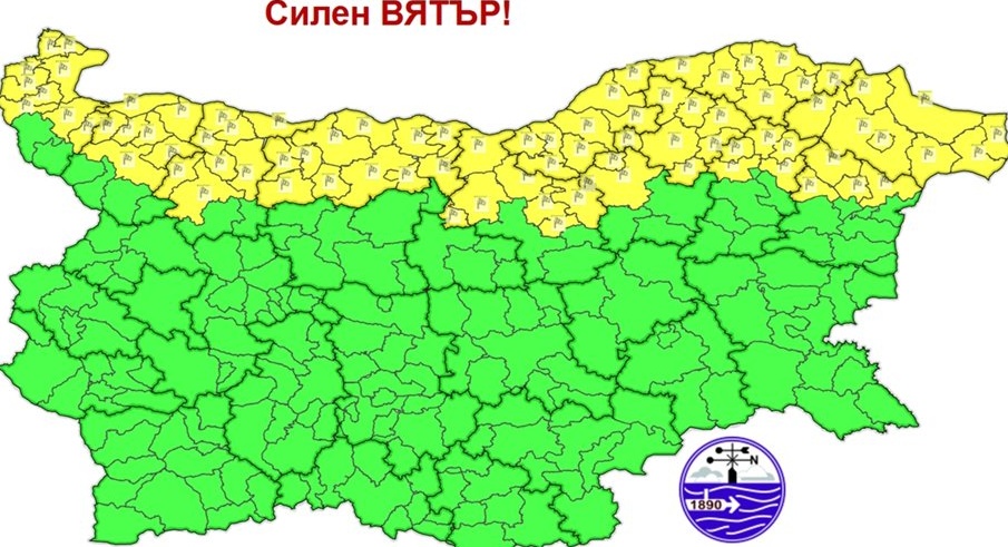 Националният институт по метеорология и хидрология (НИМХ) официално въведе предупреждения за опасни метеорологични явления за утрешния ден. Синоптиците обявиха **жълт код за силен вятър в 12 области** на страната. Информацията е потвърдена и публикувана на официалния сайт на метеорологичната служба. Предупреждението от първа степен е в сила за областите Видин, Монтана, Враца и Плевен.