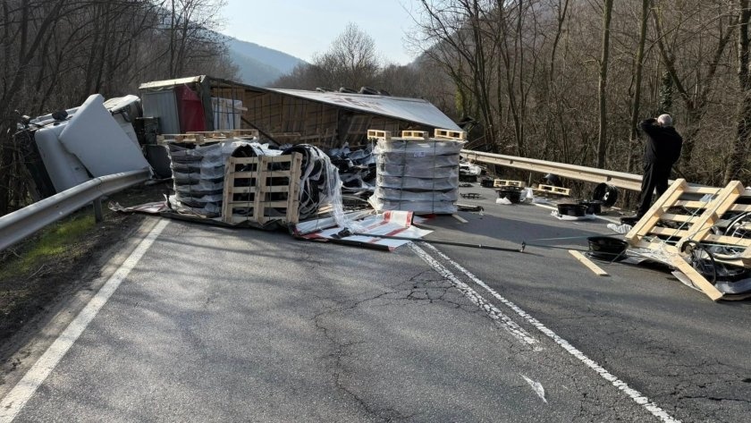 Тежка катастрофа с тир затвори Прохода на Републиката край село Пчелиново. Леките автомобили се пренасочват през Шипка, докато товарните изчакват на място.