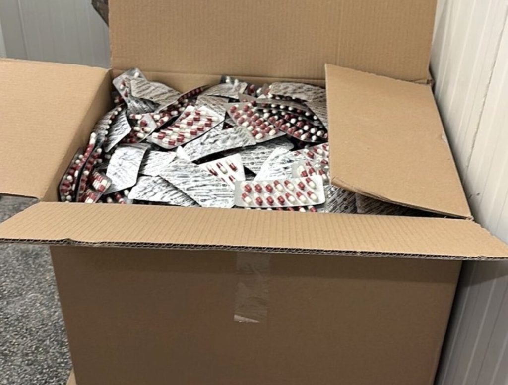 При претърсването криминалистите иззеха множество чували и кашони. В тях са открити прахообразни вещества, таблетки под формата на капсули и готови блистери. Всички стоки са били съхранявани и обработвани без съгласието на притежателите на изключителното право върху търговската марка.