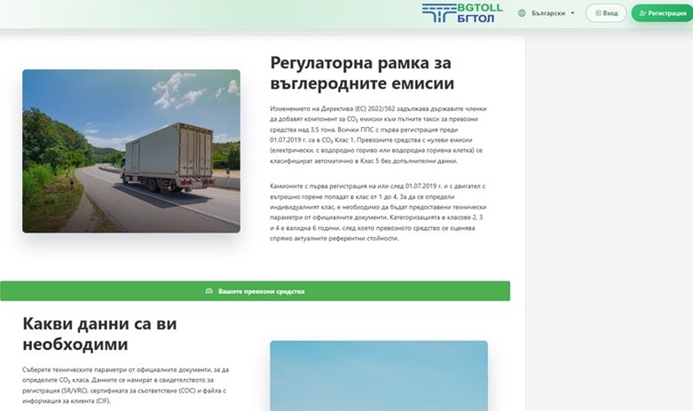 Национално тол управление напомня на собствениците и шофьорите на превозни средства над 3,5 тона за активния онлайн CO₂ калкулатор. Платформата позволява самостоятелно определяне на класа на емисиите на въглероден диоксид (CO₂) чрез регистрация в националната база данни. Калкулаторът е достъпен на интернет адрес co2.bgtoll.bg и обслужва всички тежкотоварни автомобили. Процесът по регистрация започна на 15 декември 2025 г. и се развива с високи темпове.