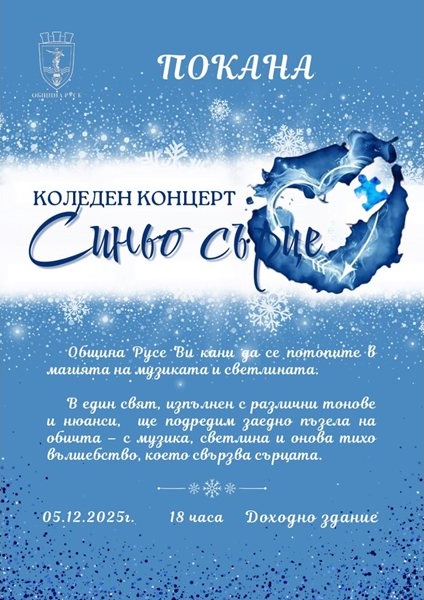 Общинският съвет в Русе одобри даряването на 3 070 евро за Сдружение „Родители на деца и възрастни с аутизъм“. Средствата бяха събрани по време на благотворителния концерт „Синьо сърце“.