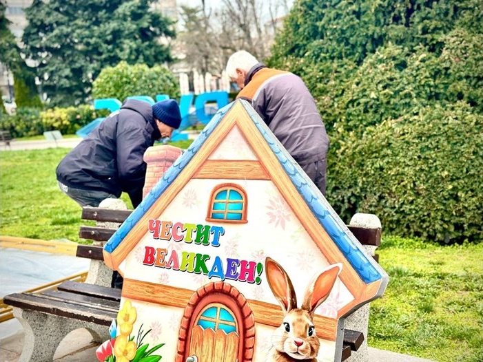 Община Русе разширява великденската украса на площад „Свобода“ с нови фигури, обемни яйца и арт инсталации за предстоящите празници.