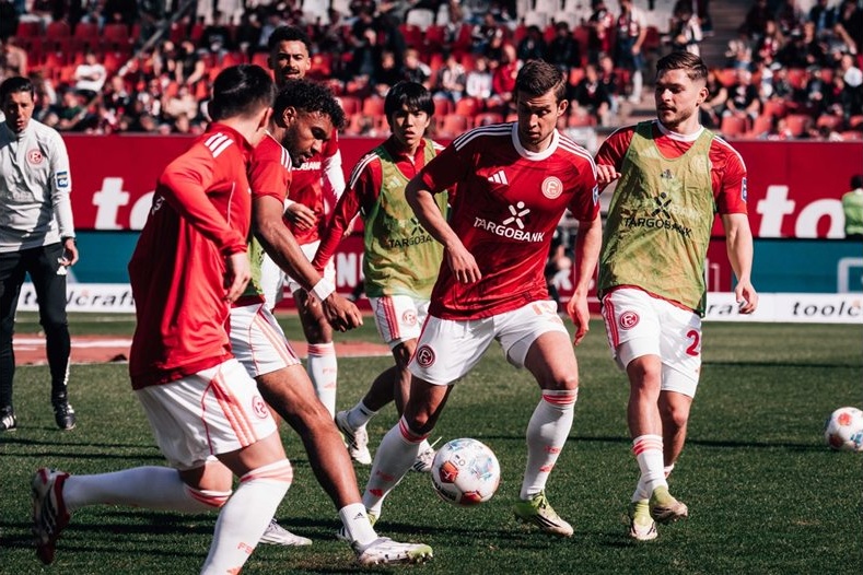Илия Груев (вляво) води разгряването в Нюрнберг. Снимка: facebook.com/fortunaduesseldorf