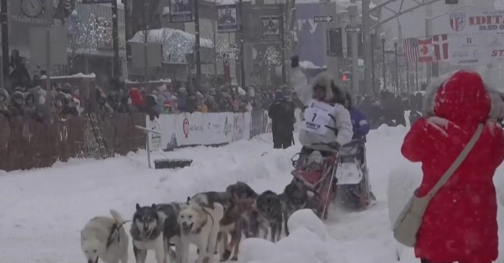 Най-известното състезание с кучешки впрягове започна в Анкъридж, Аляска. Събитието, известно като „Последното велико състезание на Земята“, се провежда всяка година през март.
