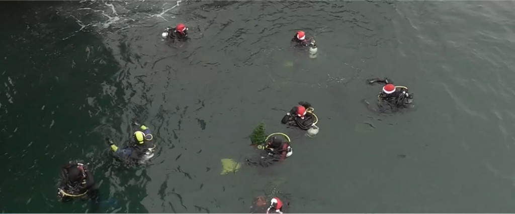 След гмуркането водолазите отвориха бутилка шампанско. Те раздадоха и тематични късмети под водата. Украсиха подводна елхичка, преди да излязат на повърхността. Това е последното гмуркане за годината, изпълнено с настроение и музика.