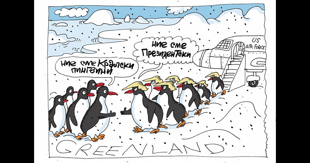 Ивайло Нинов представя нова анимационна карикатура, изобразяваща войниците на Тръмп в Гренландия. Авторът на „Малкия Иванчо“ продължава своята популярна поредица от седмична политическа сатира.